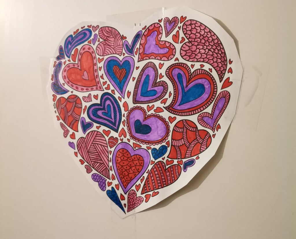 You may have seen this before, but yeah, I colored it, cut it to a heart shape and hanged it on my wardrobe doors. Looks nice and you can color it anyway you want. You can frame it as well or hang it on a wall (or give it as a present to somebody 😉
