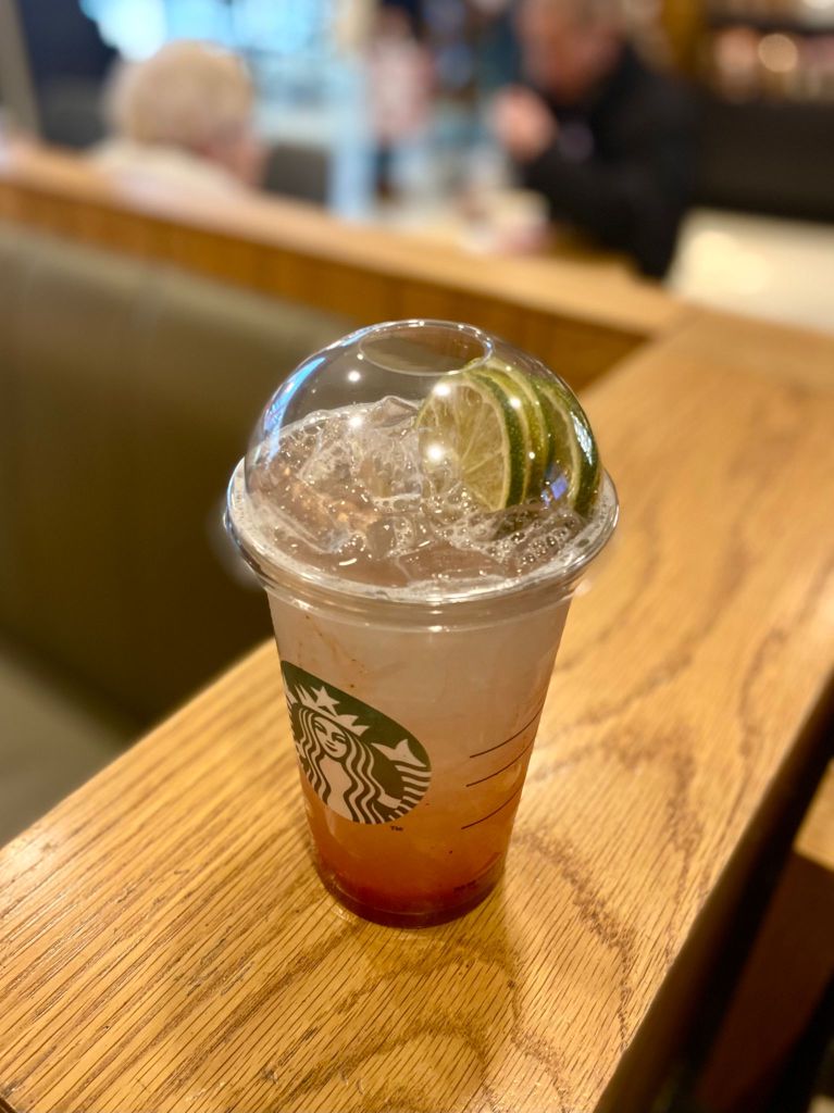 Kokią kavą/gėrimą aš rekomenduočiau? Tai Matcha Latte su sojos pienu, ir vanilės sirupu. (Jokio cukraus) Matcha yra padaryta iš žalios arbatos ir gali būti kartoka, tai jei nemėgstat žalios arbatos, neimkit. Ir kitas gėrimas yra Cold Brew. Dabar gauti Cold Brew ne visur įmanoma. Mes irgi retai darydavom, nes ten yra specialus procesas kaip ją daryt ir kava visada bus šalta. Kava yra labai stipri. Mano kolegos eksperimentavo, na ir žodžiu, geriausiai imti su baltojo šokolado padažu ir man rodos Oat pienu. Bet tiesiog gali prašyt įprasto pieno. Žiauriai skanu ir duoda energijos visai dienai. Pamenu, dirbau kažkada irgi su naujoke ir mes abi nežinojom kiek toks cold brew pilti i puodelį. Nu įpylėm praktiškai pilna ir šiek tiek pieno šlakstelėjom… Kai mes po to pamatėm, kad tos kavos reikėjo mažiau nei puse puodelio įpilt, mes tiesiog tokio strokio turėjom, nes galvojom žmogus infarktą gaus nuo to gėrimo 😂 Bet manau, kad gal susiprato ir neišgėrė visko. Turėjo būt max stipru. Visi kiti gėrimai, nuoširdžiai pasakysiu, nėra kažkokie ypatingi, maistas irgi nu tiesiog maistas. Apačioje nuotrauka gėrimo kurį aš padariau. Užsakė berniukas ir tiesiog užsakymas buvo visiškai lempinis. Bet sakė jam buvo skanu.