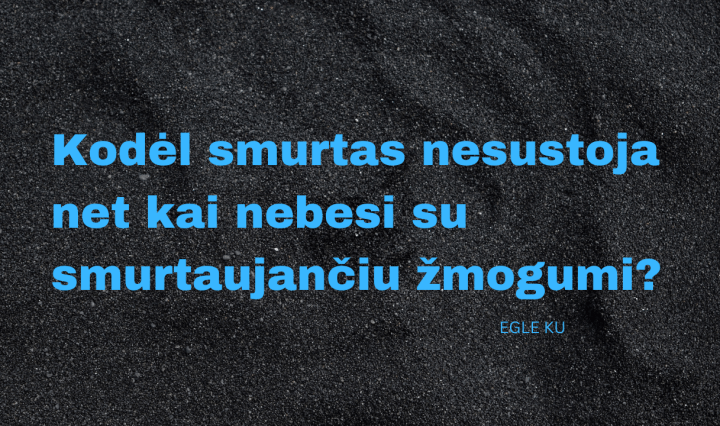 Viskas aplink turi prasmę.Tavo žodžiai ir veiksmai.Pažiūrėk į gyvenimą.Tai ne vien tikslo siekimas.Tai kova.Kiekvieną dieną skaičiuoji,kada būsi laimingas.Skaičiuoji kaip pinigus,kurie apgauna tave.Netikėk tuo.Manai, kad tu gimei šiaip?Tada, kodėl esi ten, kur esi?Kodėl padedi tam, kam reikia?Atstitiktinumas? Mažai skirias nuo likimo.Melas?Mąstei … Continue reading Eilėraštis – Prasmė